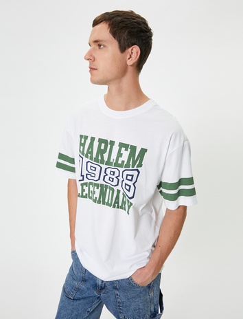 Slogan Baskılı Tişört Bisiklet Yaka Kısa Kollu Pamuklu
