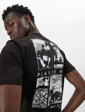 Arkası Baskılı Tişört Bisiklet Yaka Kısa Kollu Pamuklu Sepete Ekle