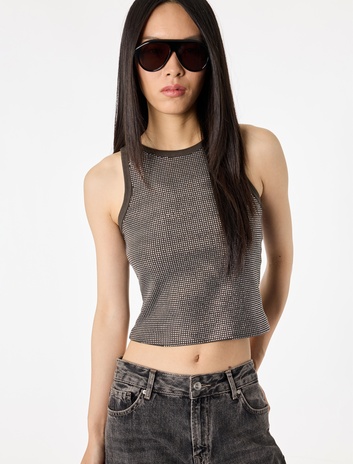 Pamuklu Taş Detaylı Kolsuz Bisiklet Yaka Bluz