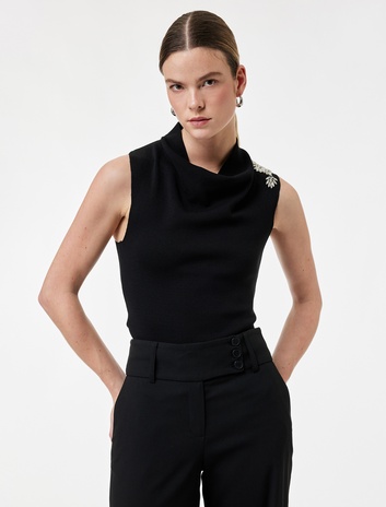 Bisiklet Yaka Kolsuz Taşlı Triko Bluz