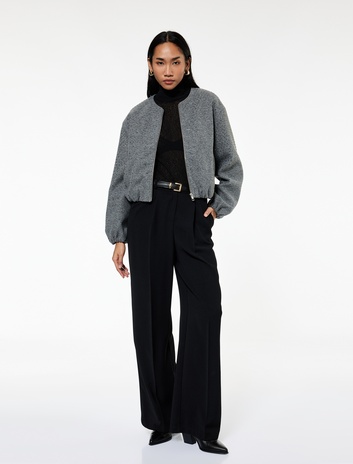 Cepli Uzun Kollu Bisiklet Yaka Crop Taşlı Kaşe Bomber Ceket Sepete Ekle