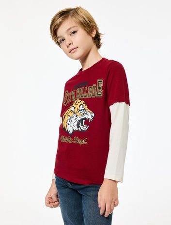 Erkek Çocuk Bisiklet Yaka Uzun Kollu Pamuklu Kaplan Baskılı Tişört