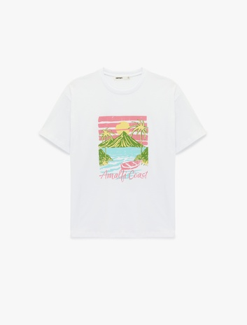 Pamuklu Kısa Kollu Bisiklet Yaka Amalfi Baskılı Tişört Sepete Ekle