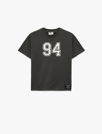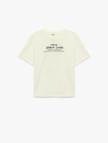 Pamuklu Kısa Kollu Bisiklet Yaka Baskılı Tişört Sepete Ekle