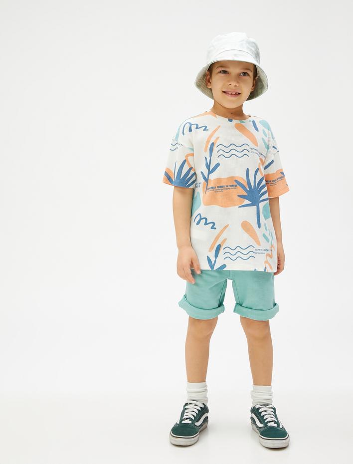 Kısa Kollu Tişört Baskılı Kapaklı Cep Detaylı Bisiklet Yaka Pamuklu Sepete Ekle