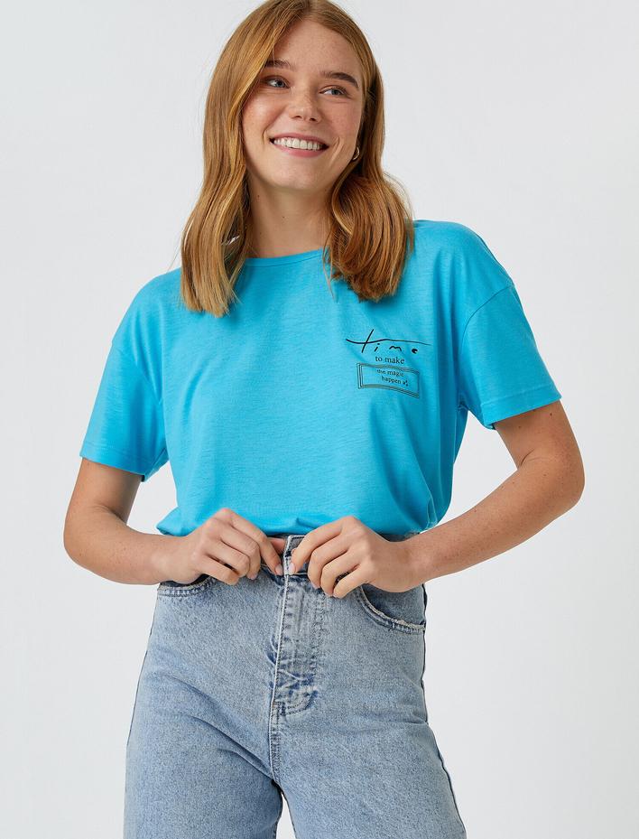 Bisiklet Yaka Kısa Kollu Baskılı Tişört Sepete Ekle