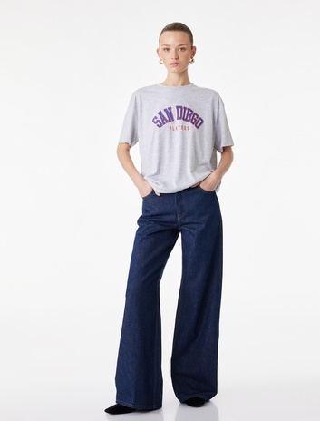 Kısa Kollu Bisiklet Yaka Pamuklu Oversize Baskılı Tişört Sepete Ekle