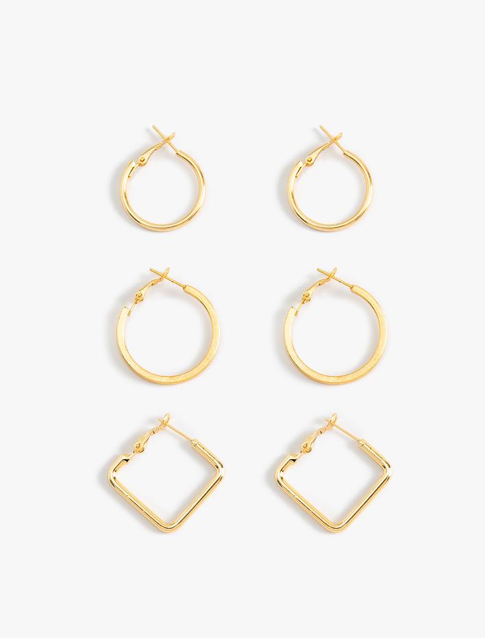 Kadın Geometrik Halka Küpe Seti 3'lü Çelik Karışımlı