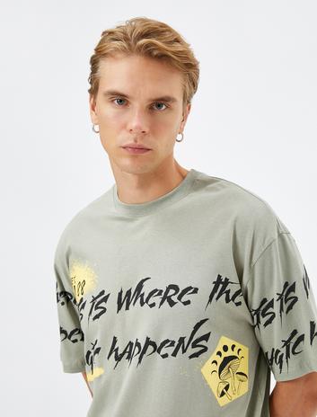 Slogan Baskılı Tişört Relax Fit Bisiklet Yaka Kısa Kollu