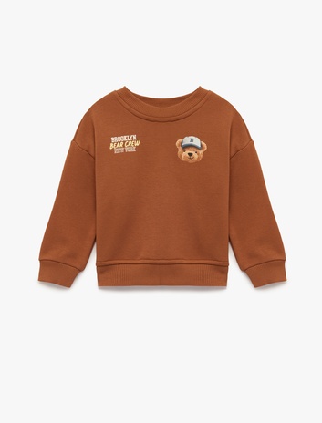 Uzun Kollu Bisiklet Yaka Ayıcık Baskılı Pamuklu Sweatshirt Sepete Ekle