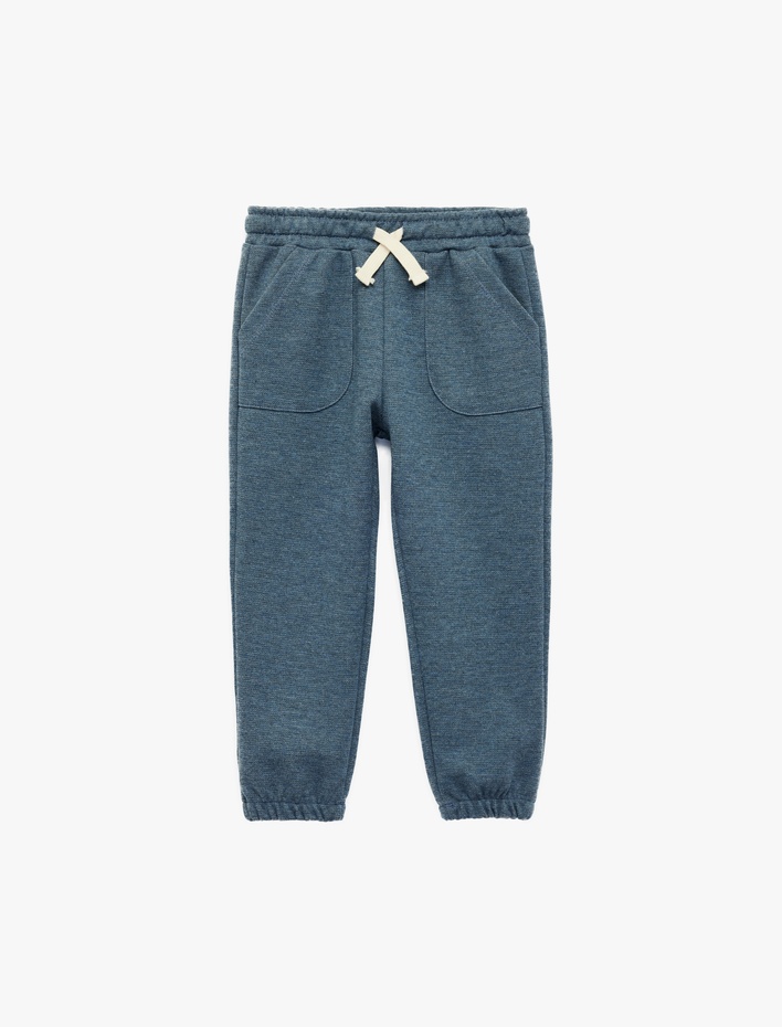Erkek Bebek Beli Bağlamalı Cep Detaylı Basic Kadife Eşofman Altı