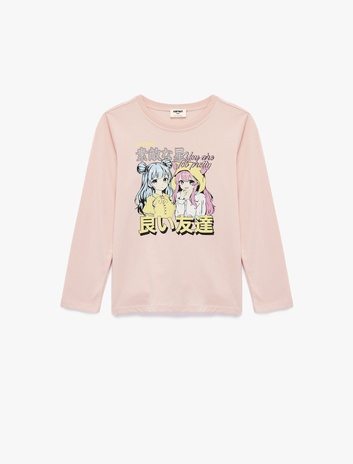 Pamuklu Uzun Kollu Bisiklet Yaka Anime Baskılı Tişört Sepete Ekle