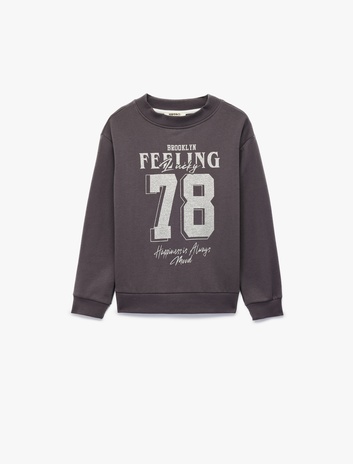 Şardonlu Uzun Kollu Bisiklet Yaka Baskılı Sweatshirt Sepete Ekle