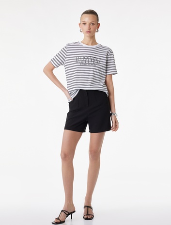 Pamuklu Kısa Kollu Bisiklet Yaka Baskılı Taşlı Çizgili Tişört Sepete Ekle
