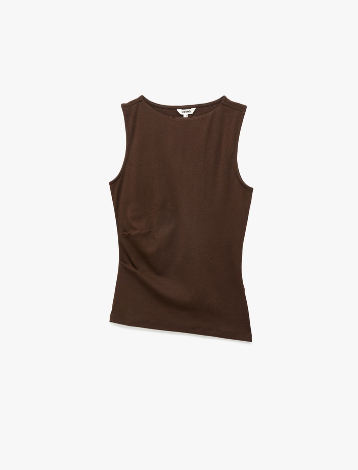 Pamuklu Asimetrik Kesim Kolsuz Kayık Yaka Bluz Sepete Ekle