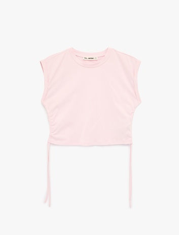 Pamuklu Kolsuz Bisiklet Yaka Büzgülü Crop Bluz Sepete Ekle