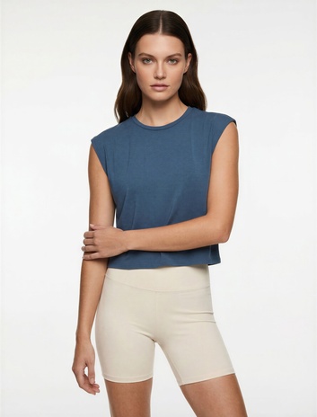 Slim Fit Asimetrik Bisiklet Yaka Bürümcük Kolsuz Tişört