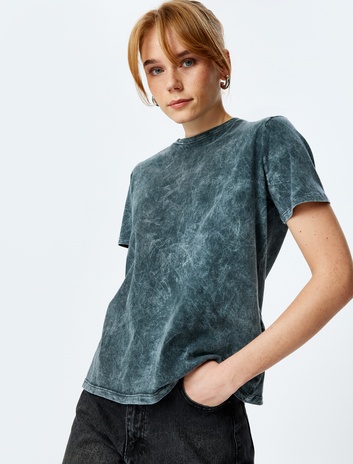Pamuklu Batik Desenli Kısa Kollu Bisiklet Yaka Tişört