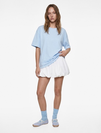Fiyonk Detaylı Kısa Kollu Bisiklet Yaka Pamuklu Tişört Sepete Ekle