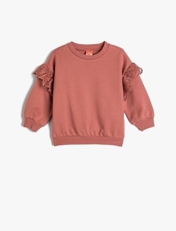 Basic Sweatshirt Fırfırlı Uzun Kollu Bisiklet Yaka Şardonlu Pamuklu Sepete Ekle
