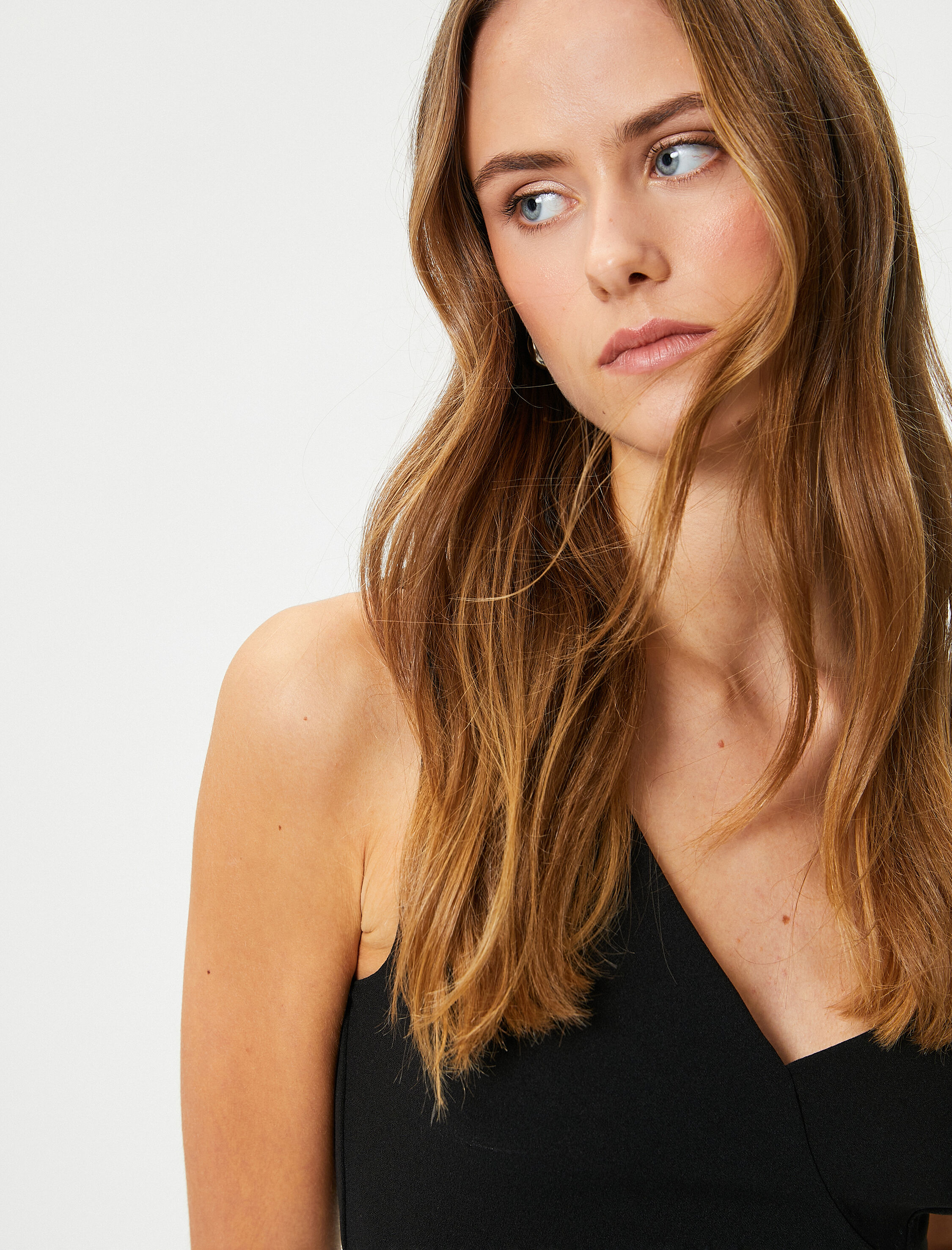 Tek Omuz Crop Üst Asimetrik Kesim Kalp Yaka Slim Fit
