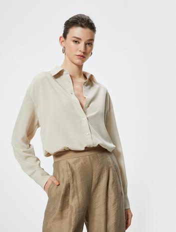 Şifon Bluz Manşetli Dik Yaka Uzun Kollu Drape Detaylı