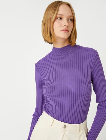 Ribanalı Triko Kazak Dik Yaka Kaşmir Dokulu Sepete Ekle