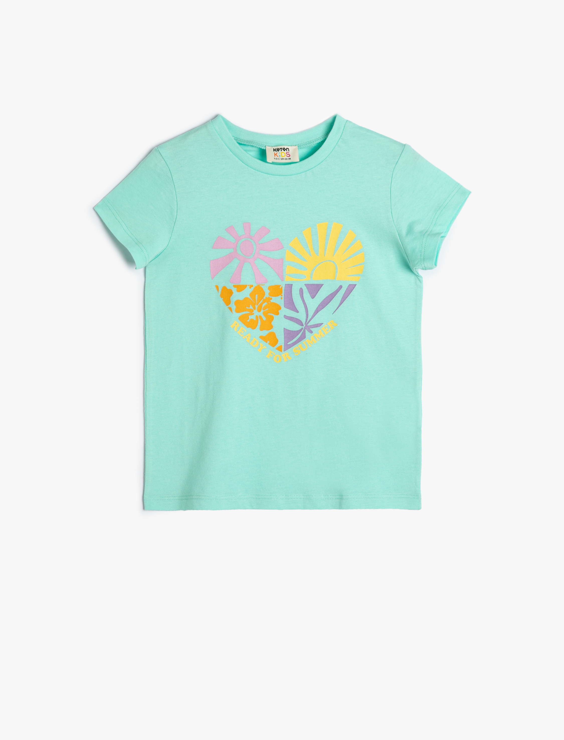 Kız Çocuk Tişört Kısa Kollu Kalp Baskılı Pamuklu