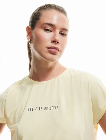 Crop Kolsuz Tişört Bisiklet Yaka Slogan Baskılı Slim Fit
