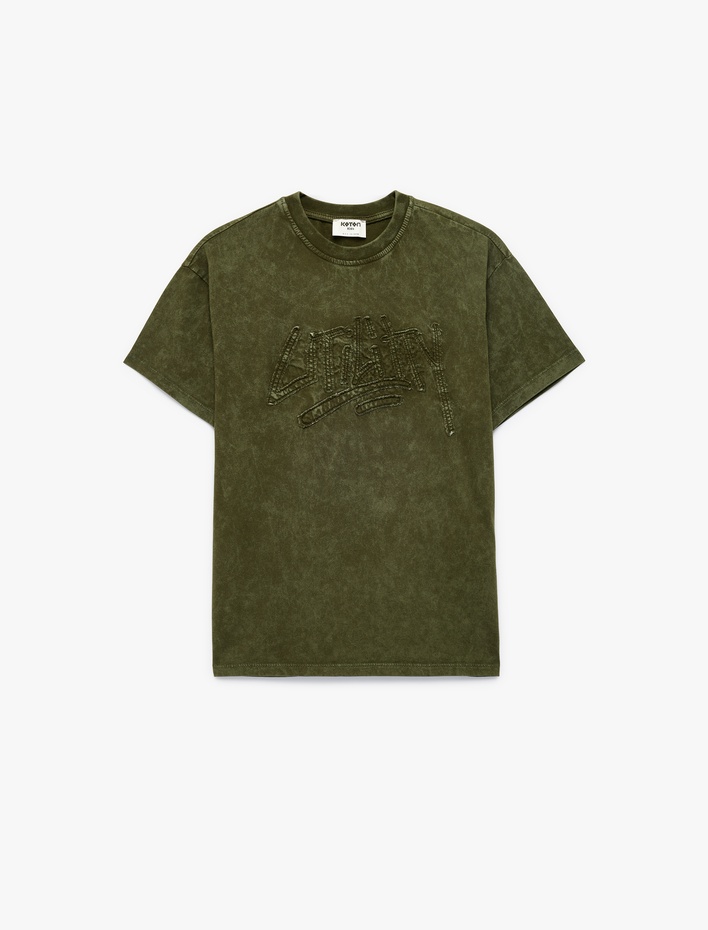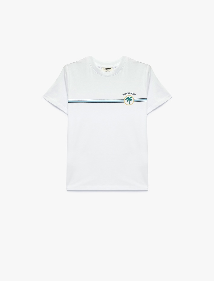 Slim Fit Kısa Kollu Bisiklet Yaka Kruvasan Nakışlı Pamuklu Tişört Sepete Ekle