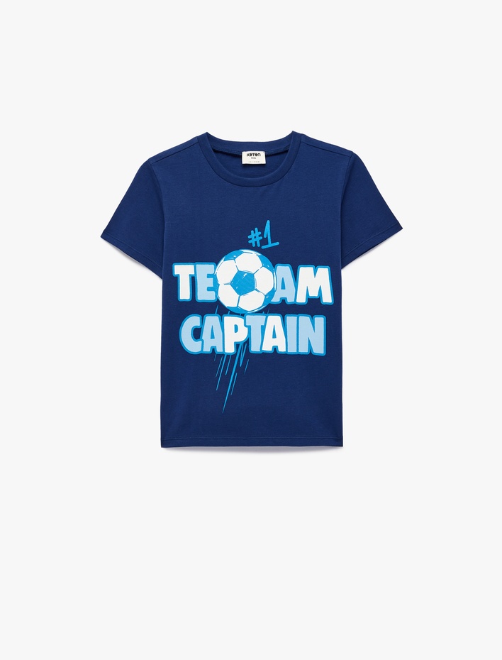Pamuklu Bisiklet Yaka Kısa Kollu Futbol Temalı Baskılı Tişört Sepete Ekle