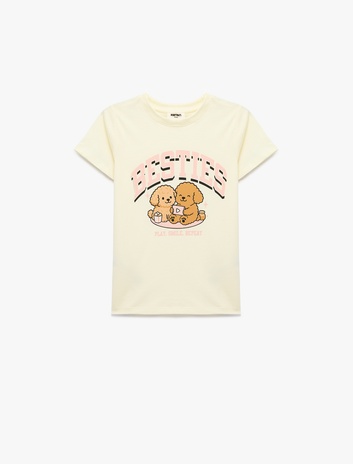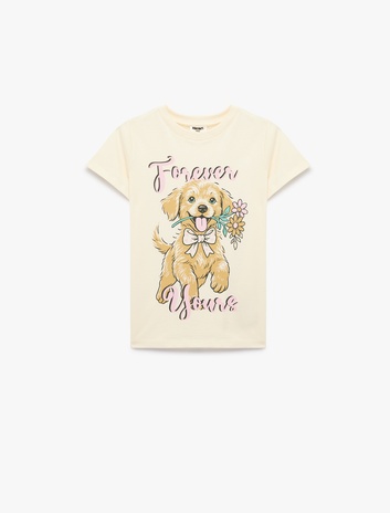 Pamuklu Kısa Kollu Bisiklet Yaka Köpek Baskılı Tişört Sepete Ekle