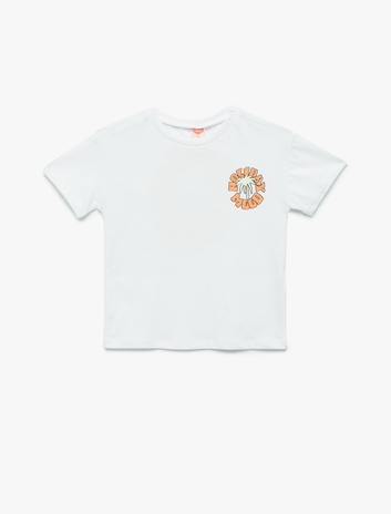 Crop Tişört Baskı Detaylı Dar Kalıp Kısa Kollu Bisiklet Yaka Pamuklu