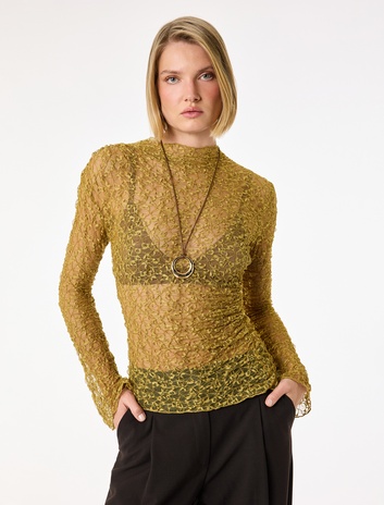 Uzun Kollu Yarı Transparan Dik Yaka Slim Fit Dantel Tişört Sepete Ekle
