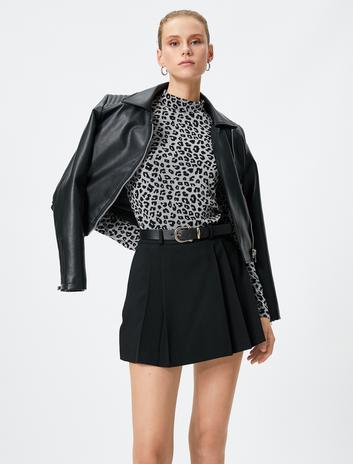 Uzun Kollu Tişört Yarım Balıkçı Yaka Leopar Desenli Sepete Ekle