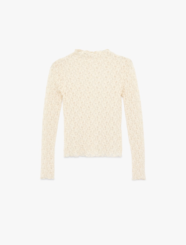 Slim Fit Dik Yaka Uzun Kollu Dantel Tişört Sepete Ekle