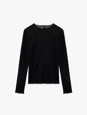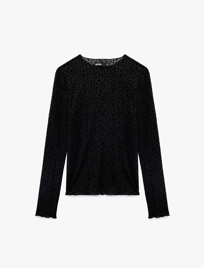 Uzun Kollu Yuvarlak Yaka Puantiyeli Transparan Tül Tişört Sepete Ekle