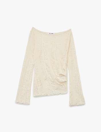 Uzun Kollu Bisiklet Yaka Büzgülü Dantel Tişört