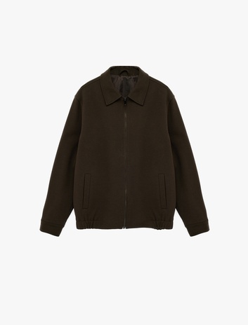 Regular Fit Uzun Kollu Cepli Gömlek Yaka Fermuarlı Bomber Ceket Sepete Ekle