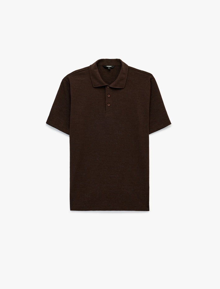 Regular Fit Kısa Kollu Keten Karışımlı Polo Yaka Triko Tişört Sepete Ekle