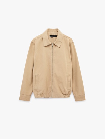 Uzun Kollu Viskon Karışımlı Cepli Gömlek Yaka Fermuarlı Ceket Sepete Ekle