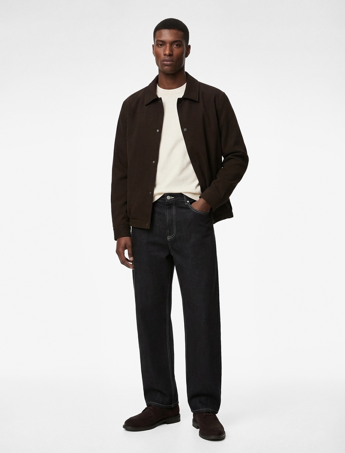 Regular Fit Uzun Kollu Cepli Gömlek Yaka Fermuarlı Suni Deri Ceket Sepete Ekle