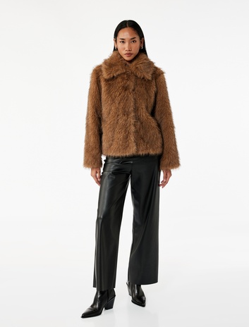 Kruvaze Yaka Uzun Kollu Crop Suni Kürk Ceket Sepete Ekle