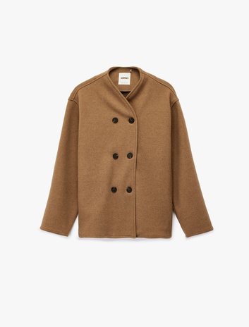 Uzun Kollu Dik Yaka Düğmeli Kruvaze Kaşe Ceket Sepete Ekle
