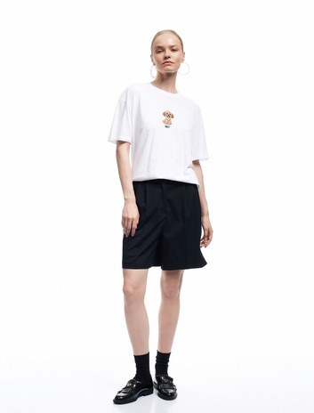 Kısa Kollu Bisiklet Yaka Köpek Nakışlı Pamuklu Tişört