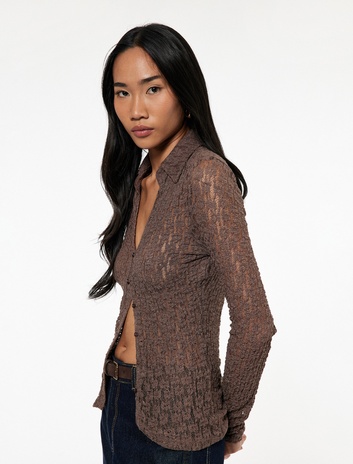 { "id": "8684756544869", "name": "Slim Fit Yarı Transparan Uzun Kollu Kaçık Yaka Dantel Gömlek", "taxonomy":["CITY FASHION","CITY FASHION","WOMEN","JERSEY","SHIRTS LS"], "currency": "TRY", "unit_price": 999.99 , "unit_sale_price": 999.99 , "url": "https://www.koton.com/slim-fit-yari-transparan-uzun-kollu-kacik-yaka-dantel-gomlek-kahve-4048431/", "stock": 13, "color": "KAHVERENGİ", "size": "XL", "product_image_url": "https://ktnimg2.mncdn.com/products/2025/10/10/3130882/8825a39a-4cb4-4a8a-aa21-87c4dd8f7c0b.jpg" }