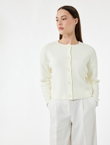 Uzun Kollu Bisiklet Yaka Düğmeli Triko Hırka