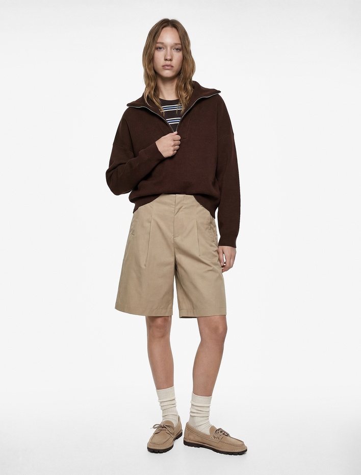 Uzun Kollu Yarım Fermuarlı Dik Yaka Triko Kazak Sepete Ekle