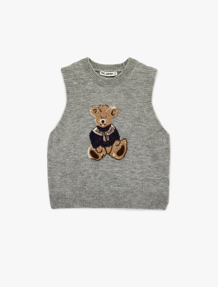 Bisiklet Yaka Ayıcık Desenli Kolsuz Süveter Sepete Ekle