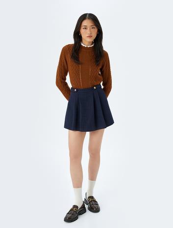 Uzun Kollu Bisiklet Yaka Saç Örgü Dokulu Triko Kazak